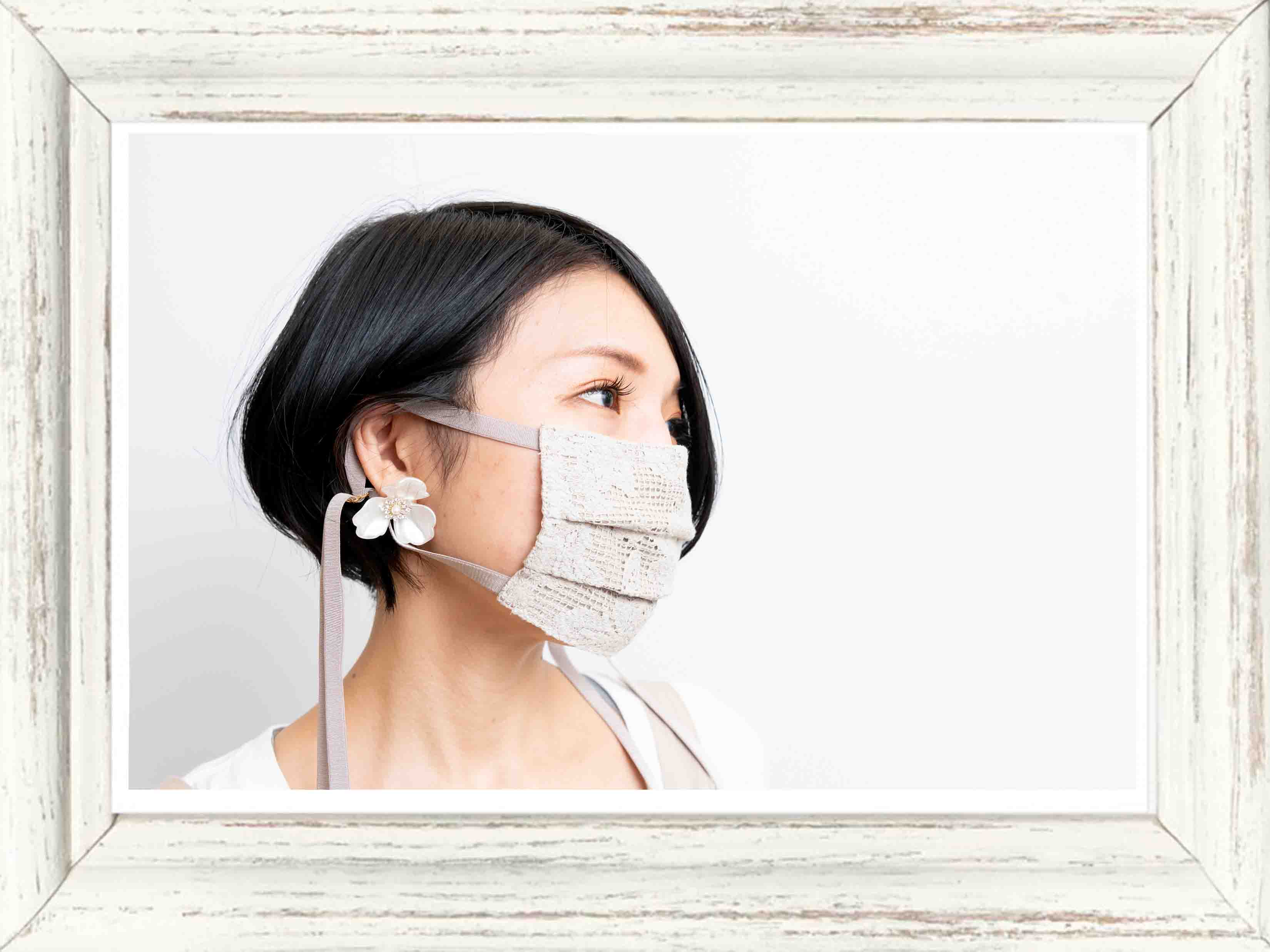 レース地×リボン紐×布マスク」。