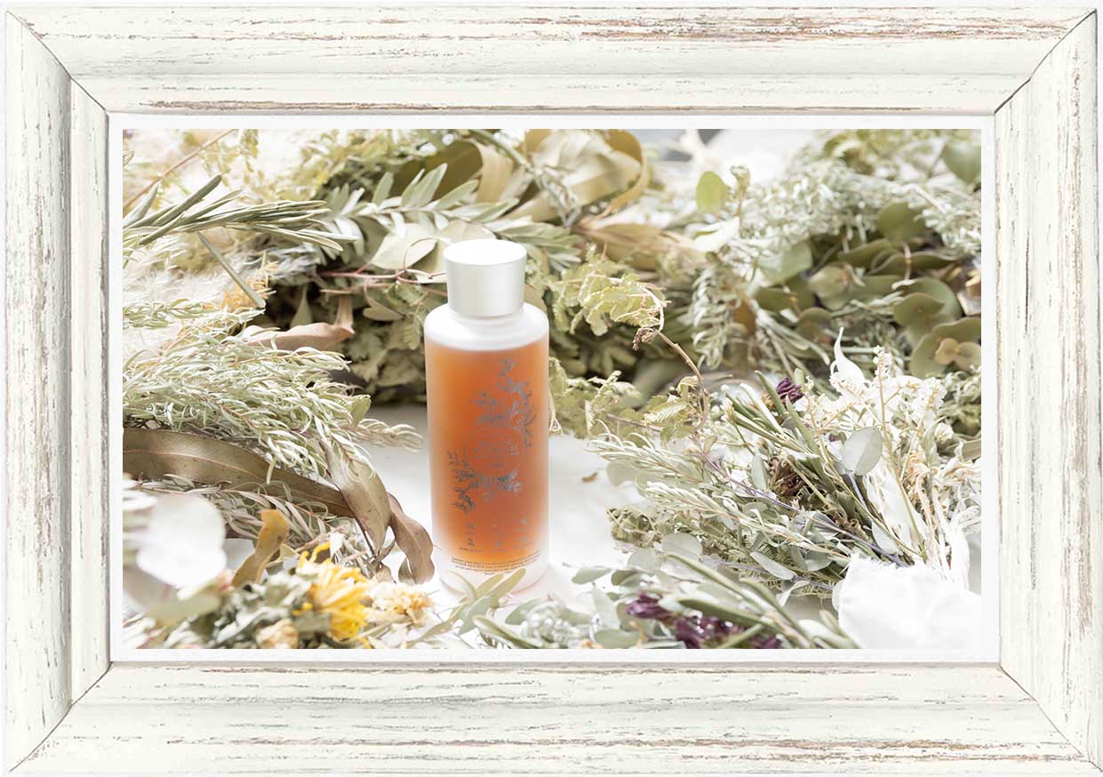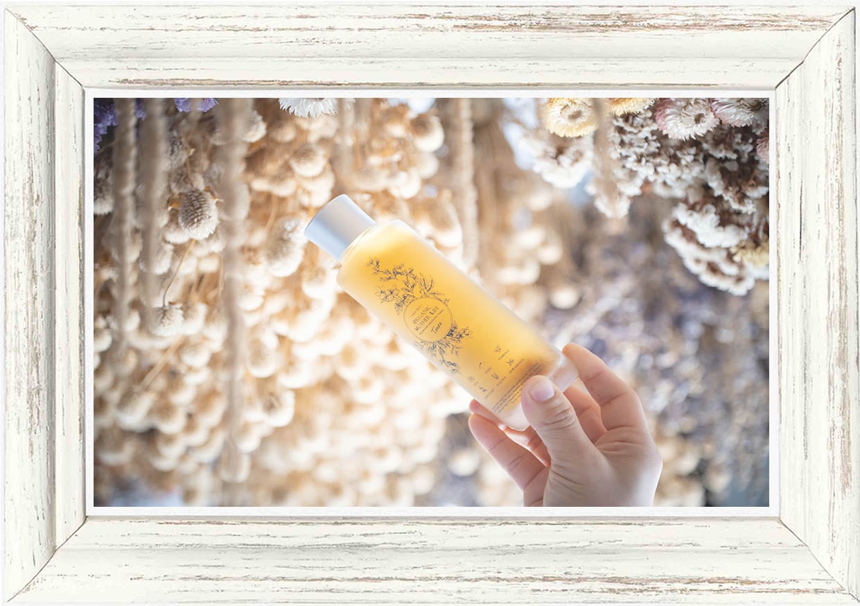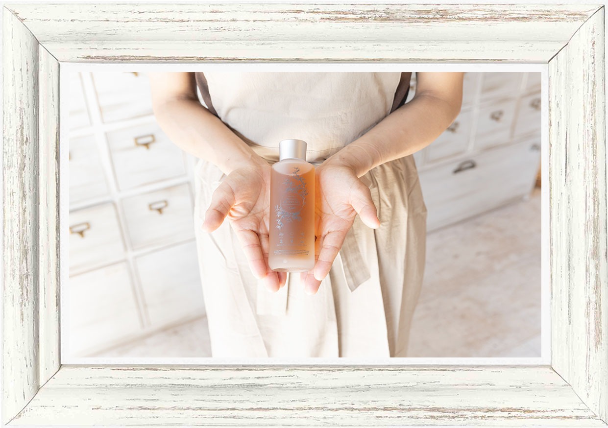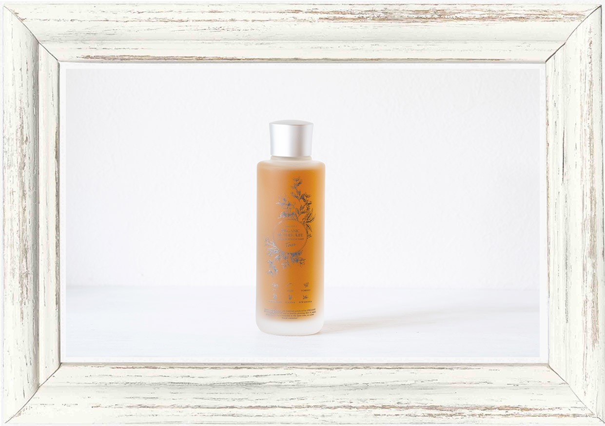 ■廃棄の有機柚子と有機蓬エキス+20種の植物から生まれた「アルテミシアエッセンシャルトナー」“Artemisia essential toner” 150ml 3980円 よりトロトロの質感をお楽しみいただけます。 株式会社オーガニックマザーライフの自社工場が位置する宮崎県にて採集された有機・自然・無農薬栽培の植物からオリジナルエキス(有機柚子果皮水抽出/水・エタノールは不使用)を20種類も配合しています。 |